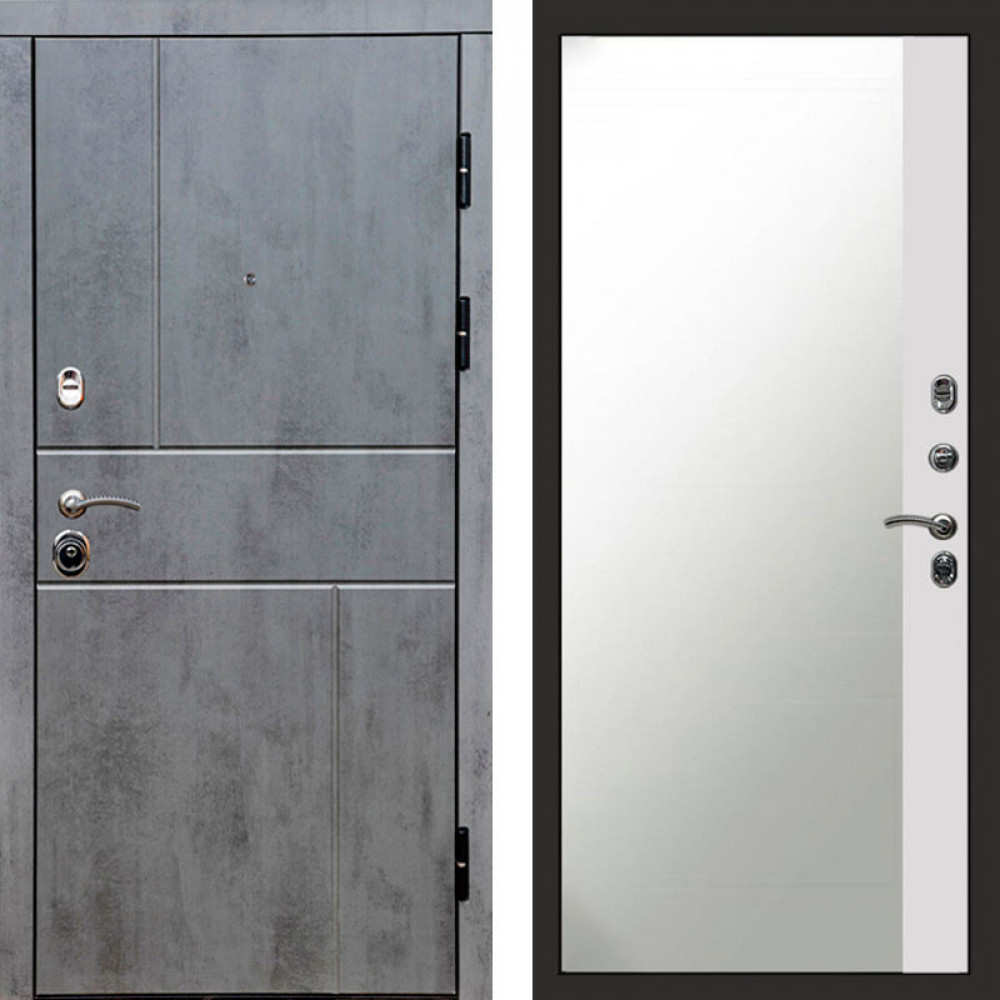 Входная дверь Termo-Door Вертикаль Бетон Темный - Зеркало Фацет Белый софт