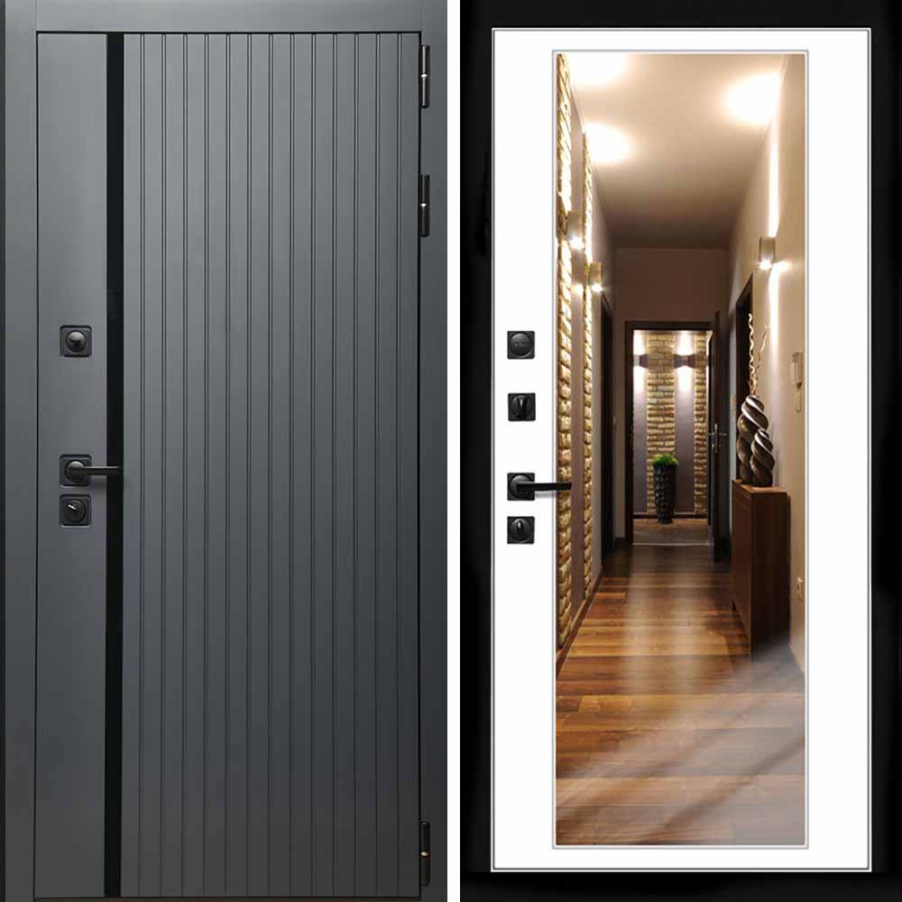 Входная дверь Интеко Агат графит с зеркалом белый софт