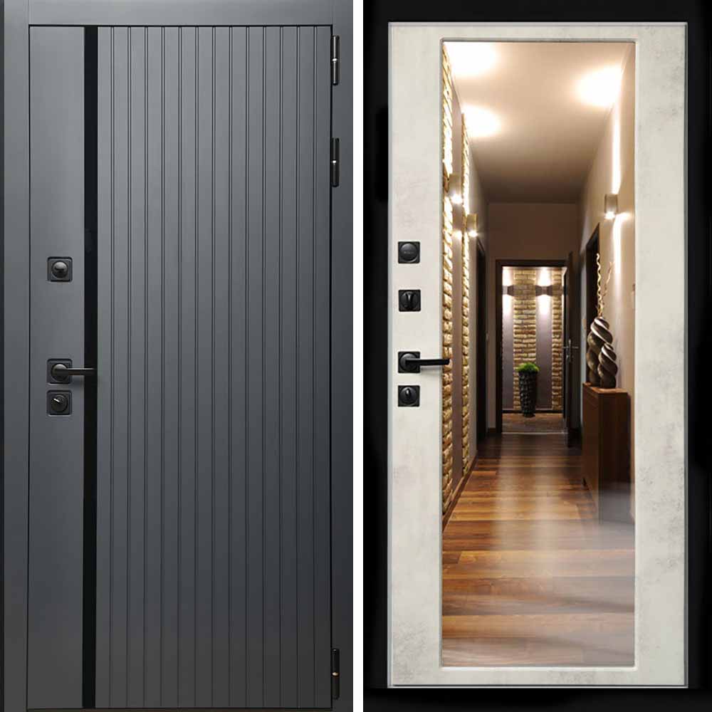 Входная дверь Интеко Агат графит с зеркалом бетон светлый