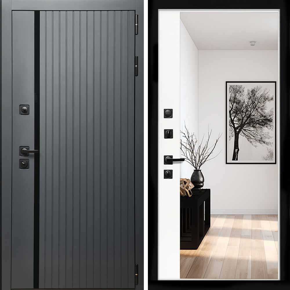 Входная дверь Интеко Агат графит с зеркалом Панорама белый софт