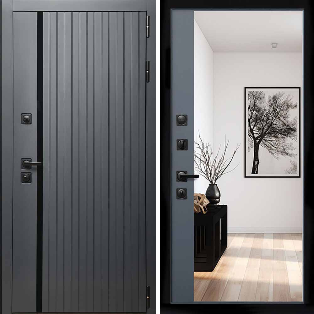 Входная дверь Интеко Агат графит с зеркалом панорама Графит