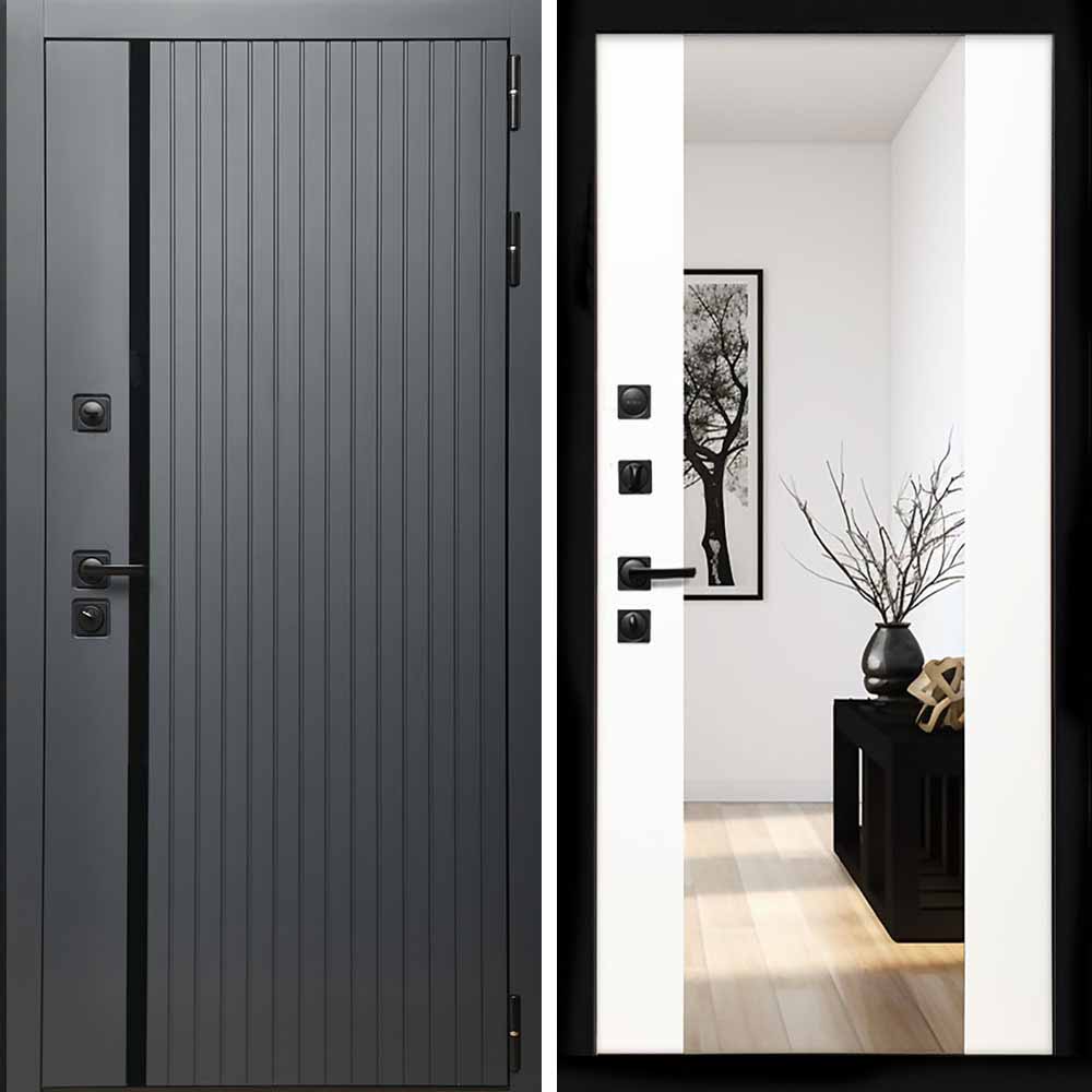 Входная дверь Интеко Агат графит с зеркалом СБ-16 белый софт