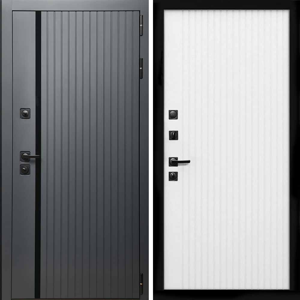 Входная дверь Интеко Агат графит Вертикаль белый матовый