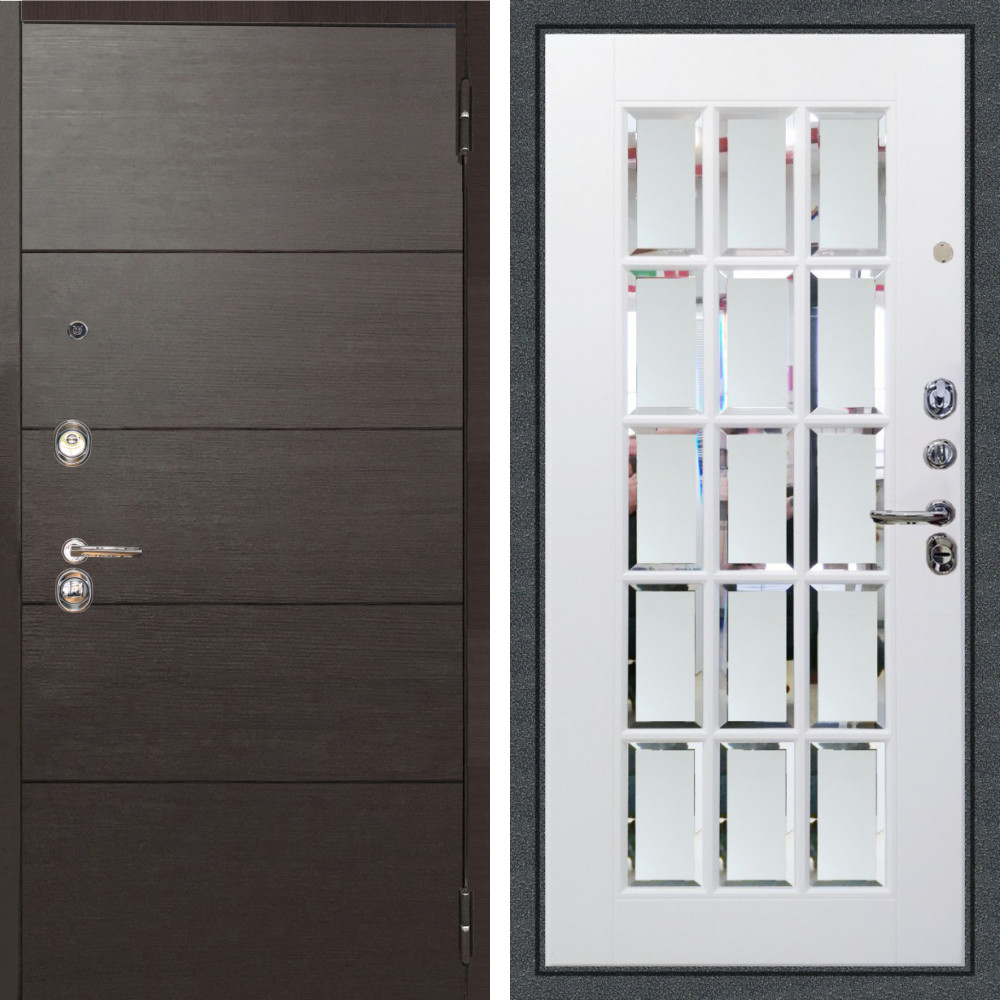 Входная дверь Аргус ЛЮКС 3К Агат Венге горизонт + Мэрелин Софт милк зеркало с фацетом и пескоструем