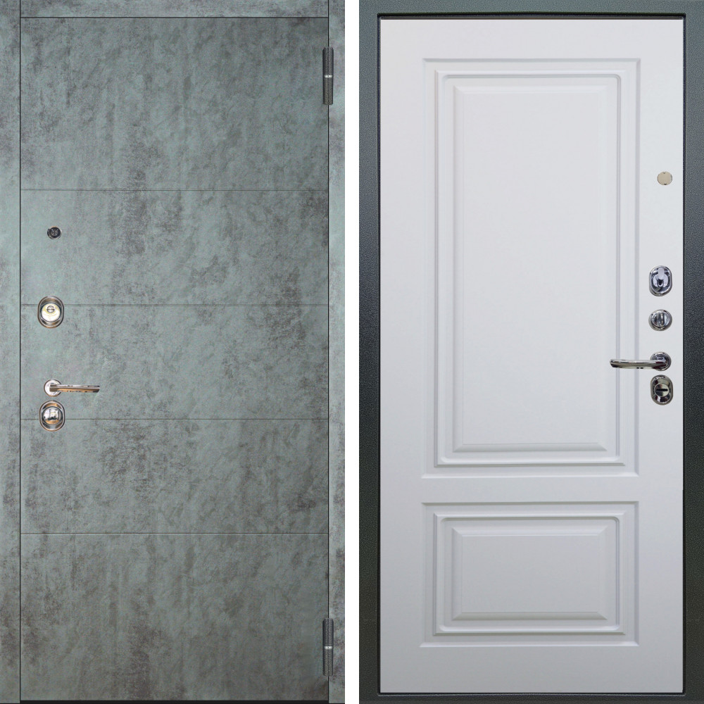 Входная дверь Лофт Бетон Светлый с внутренней отделкой Агата • Габаритные размеры: 2050x860 мм, 2050x960 мм • Металл 1.8мм • Внешнее покрытие: МДФ 16 мм. • Толщина полотна: 115 мм. • Толщина коробки: 120 мм. • Короб закрытого типа, утепленный • Уплотнитель: 3 контура • Два вертикальных ребра жесткости • Замок основной: Гардиан 6211 с блокировкой язычка • Замок дополнительный: Гардиан 6001 • Врезная броненакладка • Пазы на коробке под доборы • Независимая задвижка есть • Фурнитура Хром