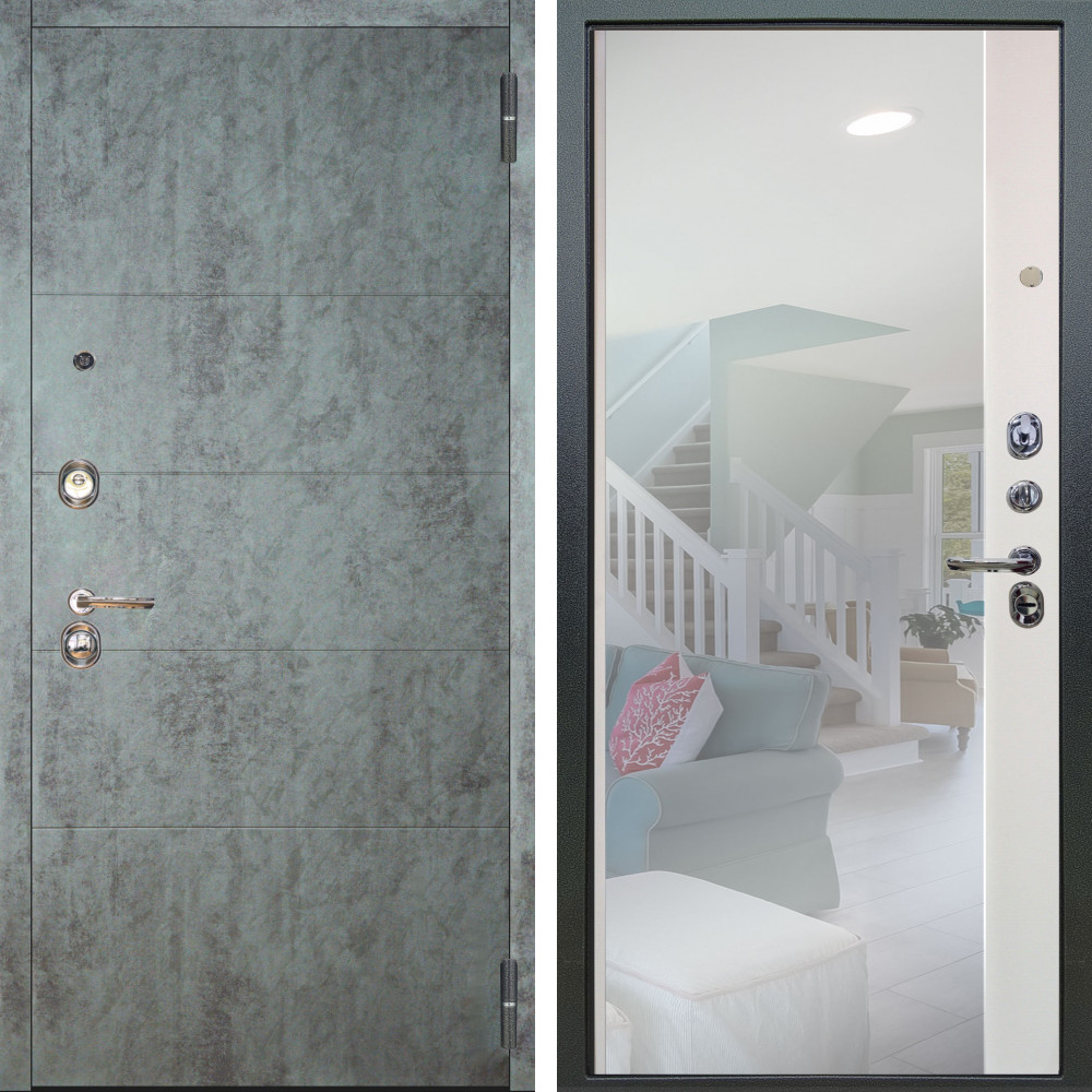 Входная дверь Termo-Door с утеплением: внешняя отделка Смарт Тренд Green, внутренняя отделка Зеркало бетон темный.Толщина полотна 95 мм, цилиндровый замок, доставка и установка в Москве и МО, гарантия 1 год.