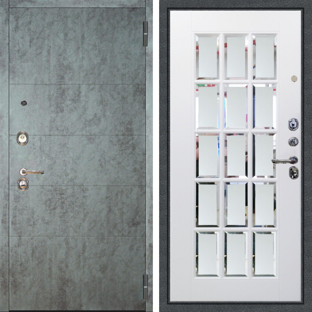 Входная дверь Аргус ЛЮКС 3К Агат Темный бетон + Мэрелин Софт милк зеркало с фацетом и пескоструем