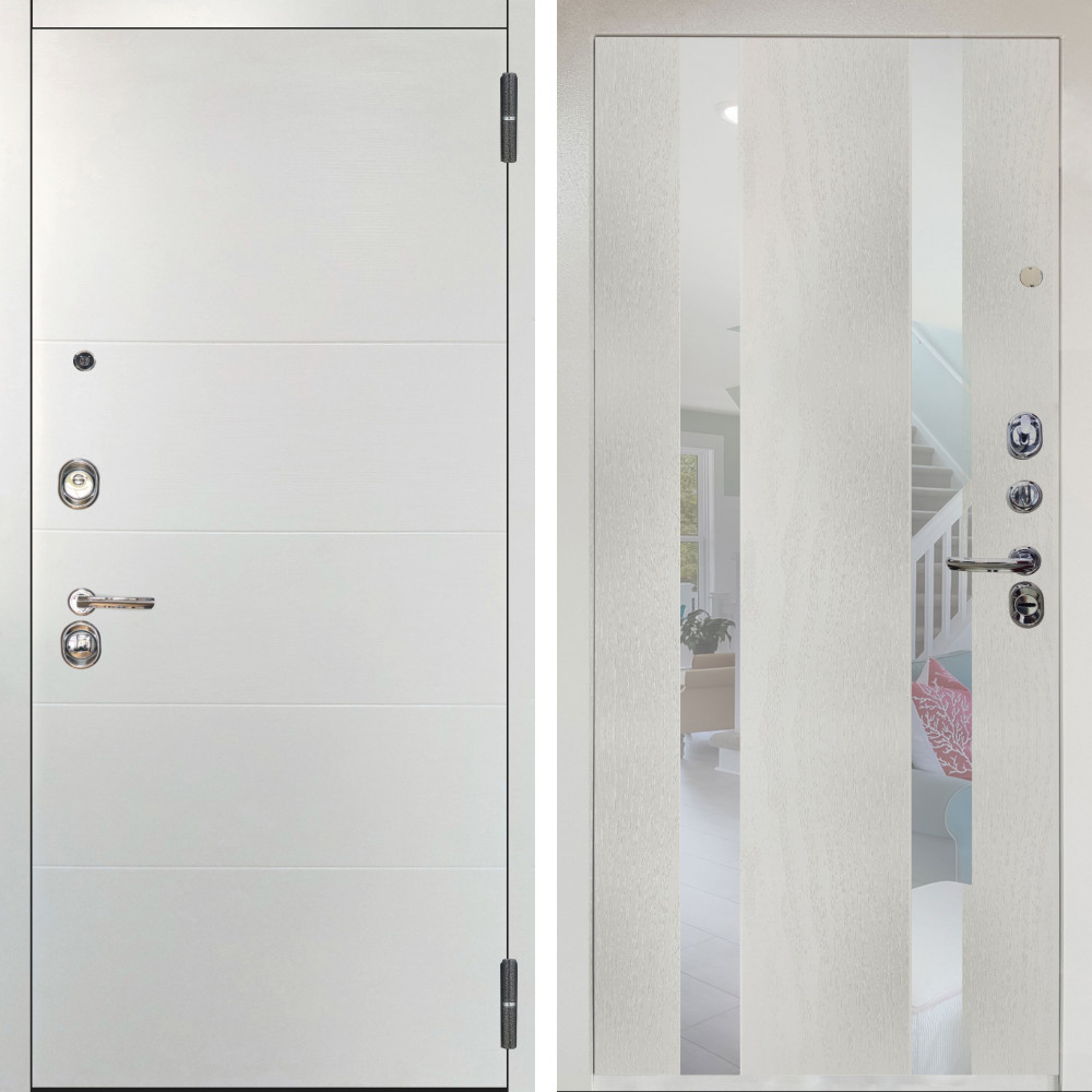 Входная дверь Аргус ЛЮКС 3К Агат Вельвет белый горизонт + Дуэт Белое дерево вставки Николь