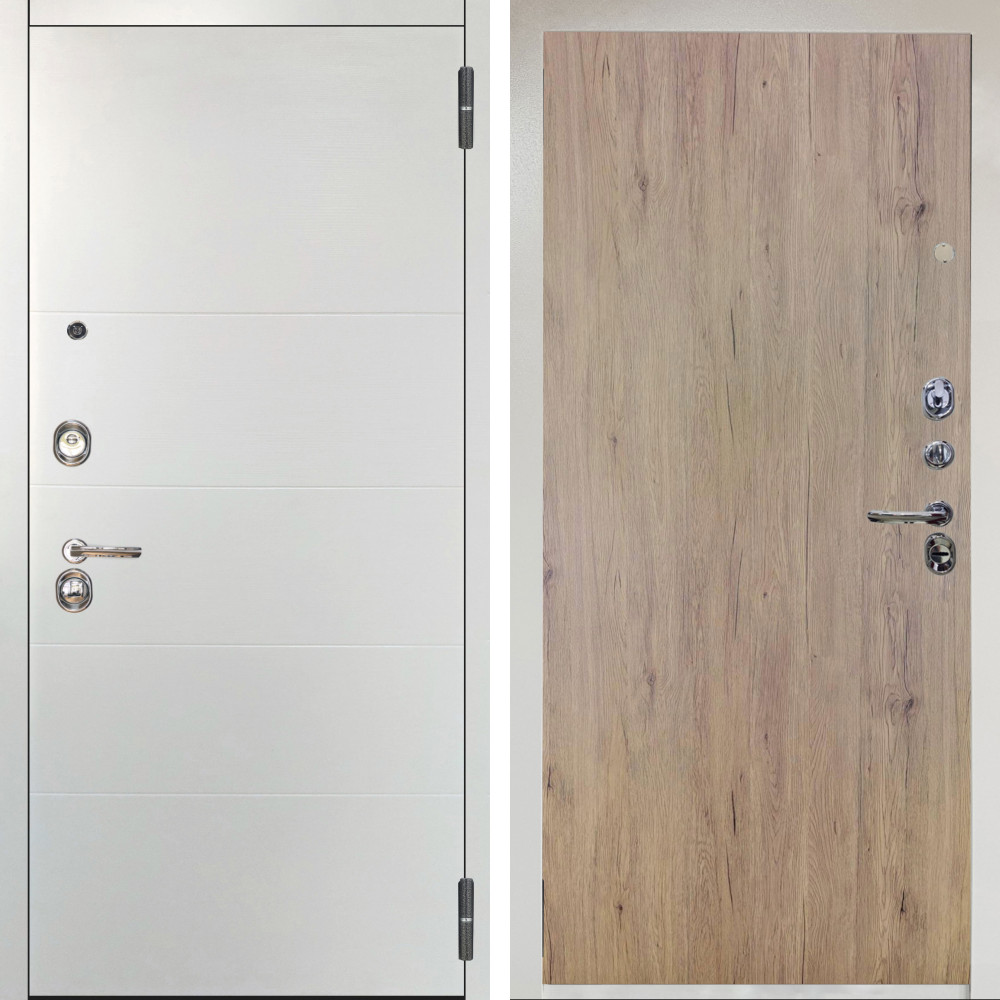 Входная дверь Termo-Door с терморазрывом и утеплением: внешняя отделка Арктика Дуб, внутренняя отделка White белый софт.Толщина полотна 95 мм, цилиндровый замок, доставка и установка в Москве и МО, гарантия 1 год.