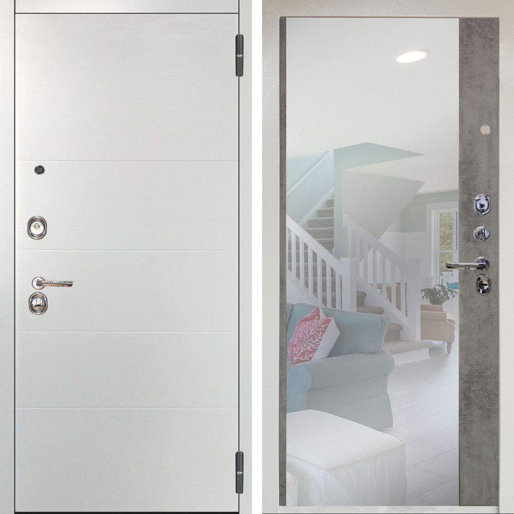 Входная дверь Аргус ЛЮКС 3К Агат Вельвет белый горизонт + Магнум Светлый бетон