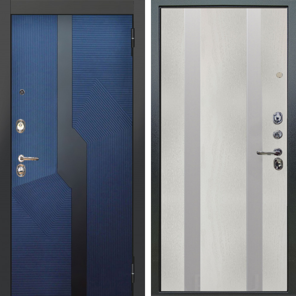Входная дверь Аргус ЛЮКС 3К Бистури синий софт + Дуэт Белое дерево вставки Изабель