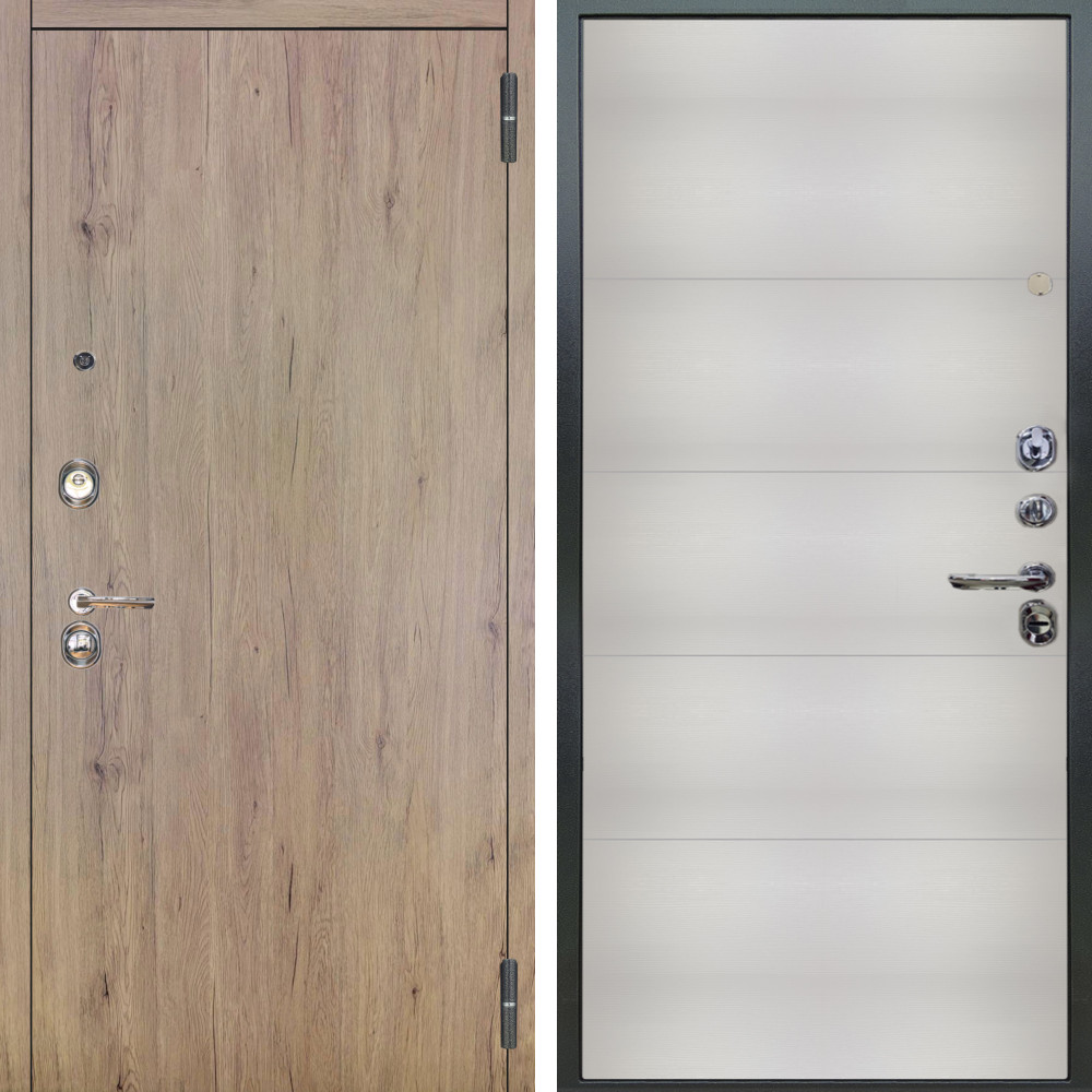 Входная дверь Termo-Door с утеплением: внешняя отделка Смарт Black Line, внутренняя отделка Горизонт Слоновая кость.Толщина полотна 95 мм, цилиндровый замок, доставка и установка в Москве и МО, гарантия 1 год.