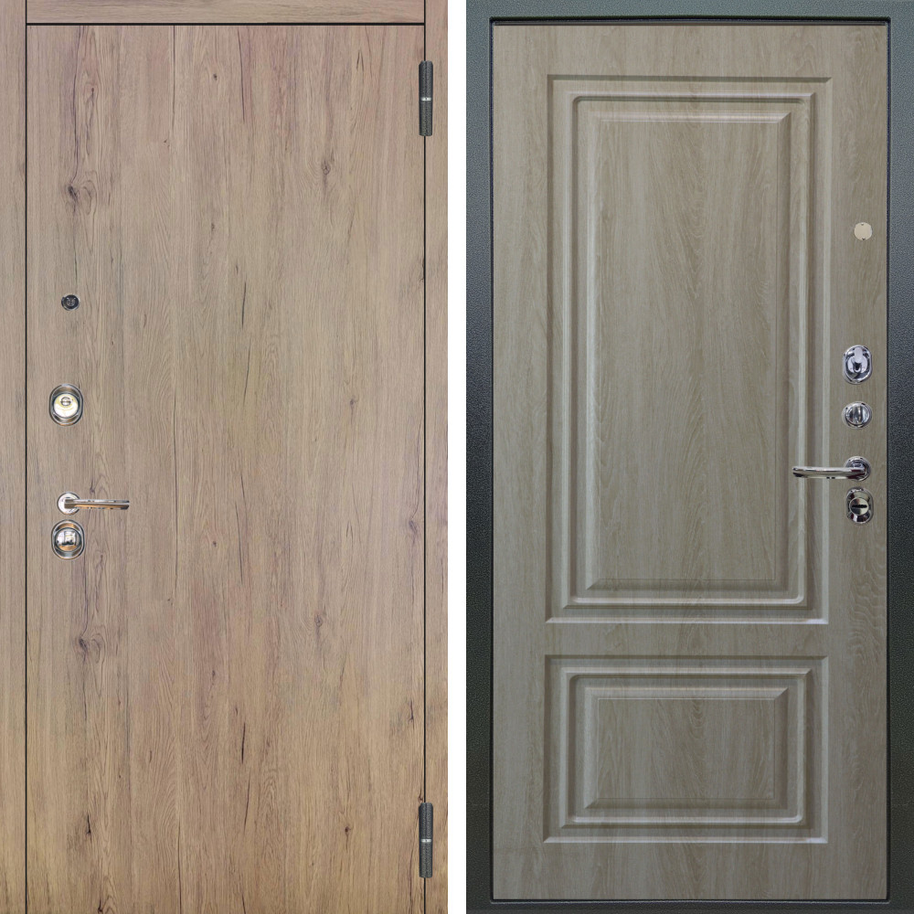 Входная дверь Termo-Door с утеплением: внешняя отделка Твист Grey, внутренняя отделка Flat Дуб.Толщина полотна 100 мм., цилиндровый замок, доставка и установка в Москве и МО, гарантия 1 год.
