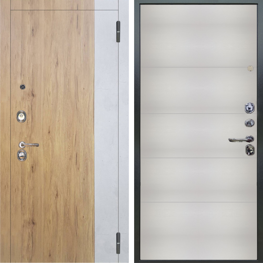 Входная дверь Аргус ЛЮКС 3К Эксперт Рустик соломенный вставка бетон урбан милк + Агат Вельвет белый горизонт