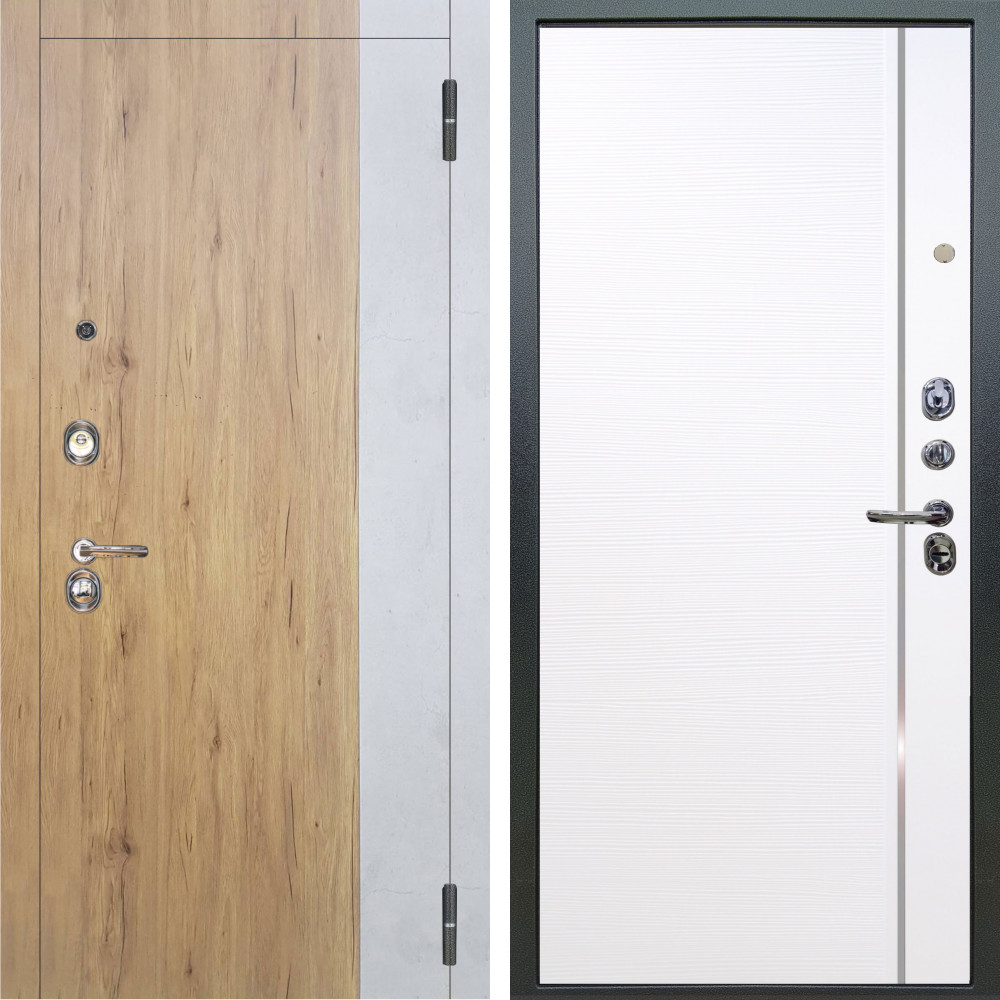 Входная дверь Аргус ЛЮКС 3К Эксперт Рустик соломенный вставка бетон урбан милк + Гауда Роял вуд белый
