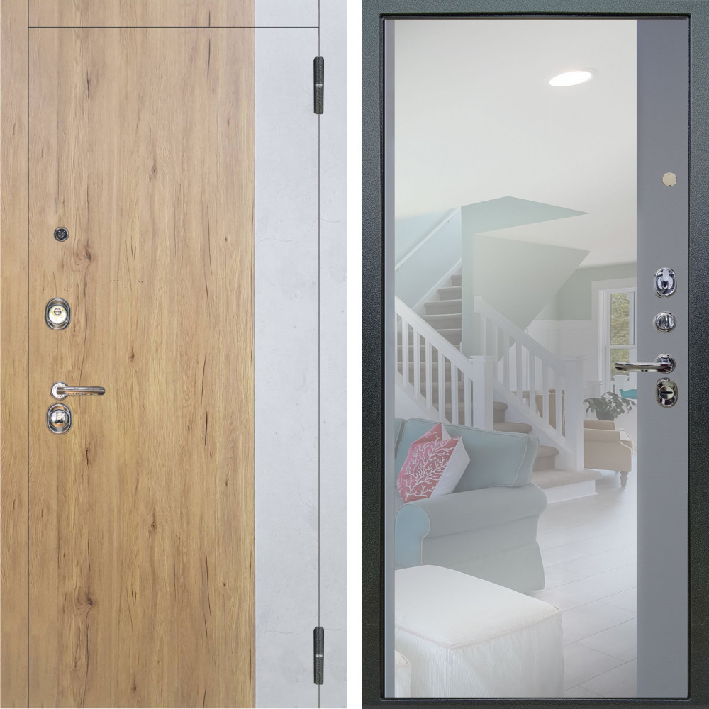 Входная дверь Termo-Door с утеплением: внешняя отделка Смарт Black Line, внутренняя отделка Зеркало дуб.Толщина полотна 95 мм, цилиндровый замок, доставка и установка в Москве и МО, гарантия 1 год.