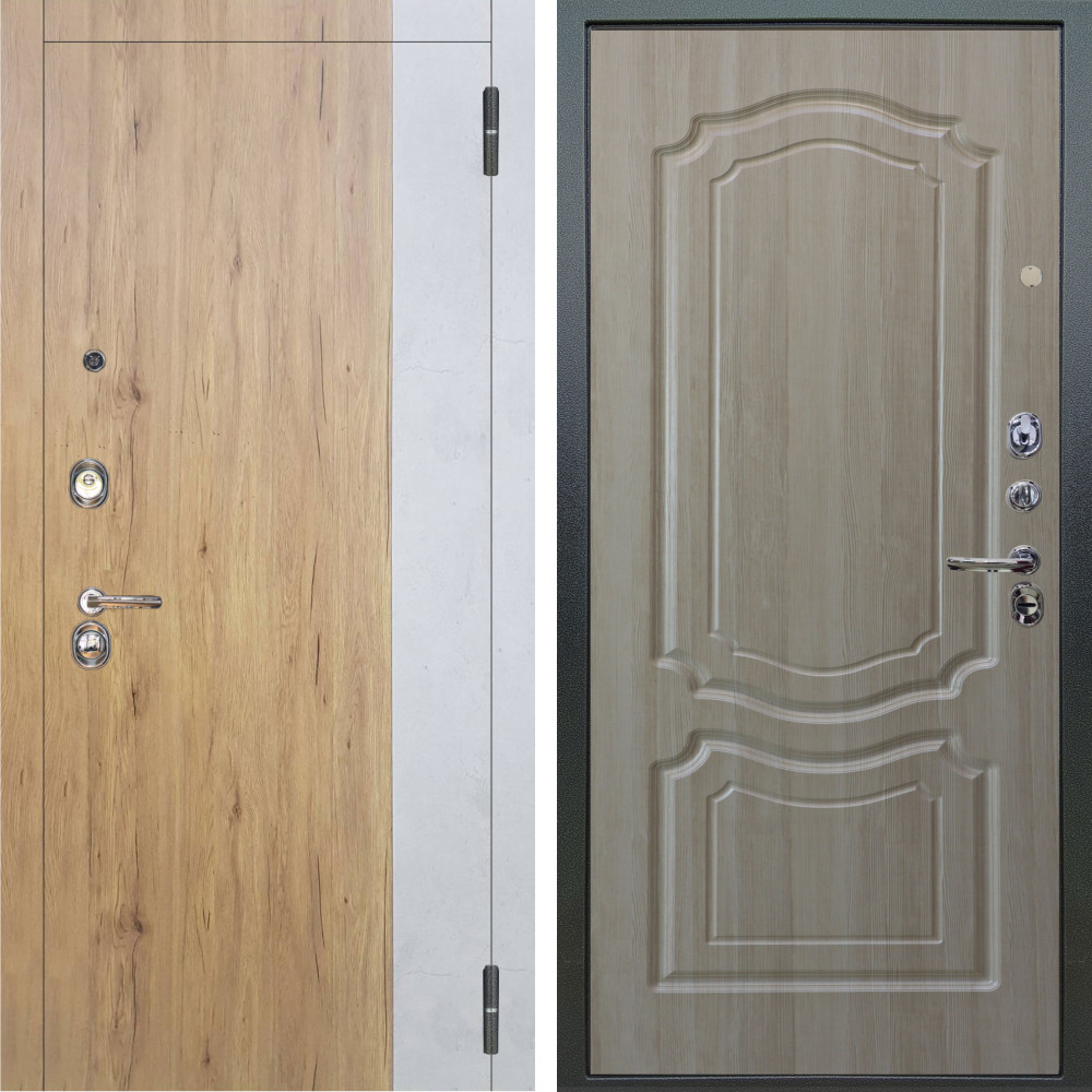 Входная дверь Аргус ЛЮКС 3К Эксперт Рустик соломенный вставка бетон урбан милк + Мишель Ларче светлый