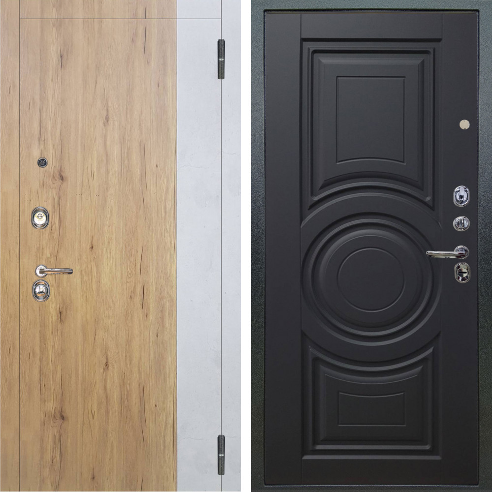 Входная дверь Аргус ЛЮКС 3К Эксперт Рустик соломенный вставка бетон урбан милк + Могадиш Черный софт