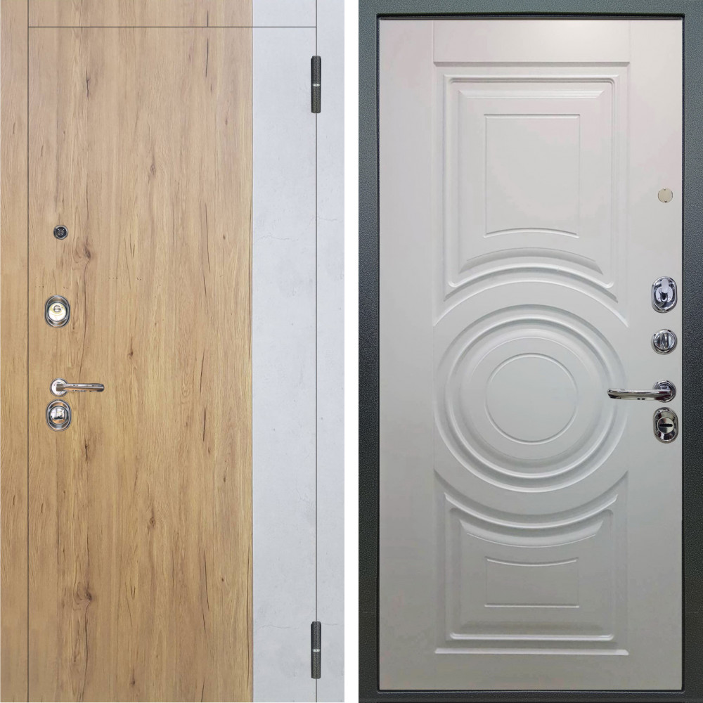 Входная дверь Аргус ЛЮКС 3К Эксперт Рустик соломенный вставка бетон урбан милк + Могадиш Софт милк