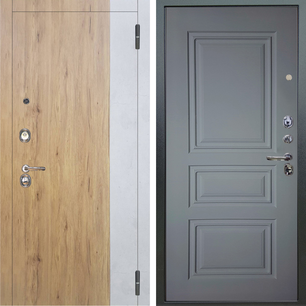 Входная дверь Аргус ЛЮКС 3К Эксперт Рустик соломенный вставка бетон урбан милк + Скиф Силк маус