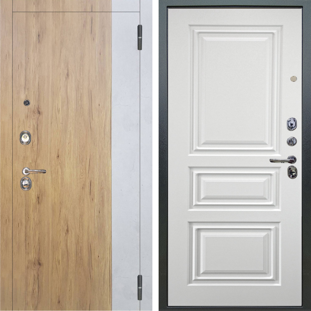 Входная дверь Аргус ЛЮКС 3К Эксперт Рустик соломенный вставка бетон урбан милк + Скиф Софт милк