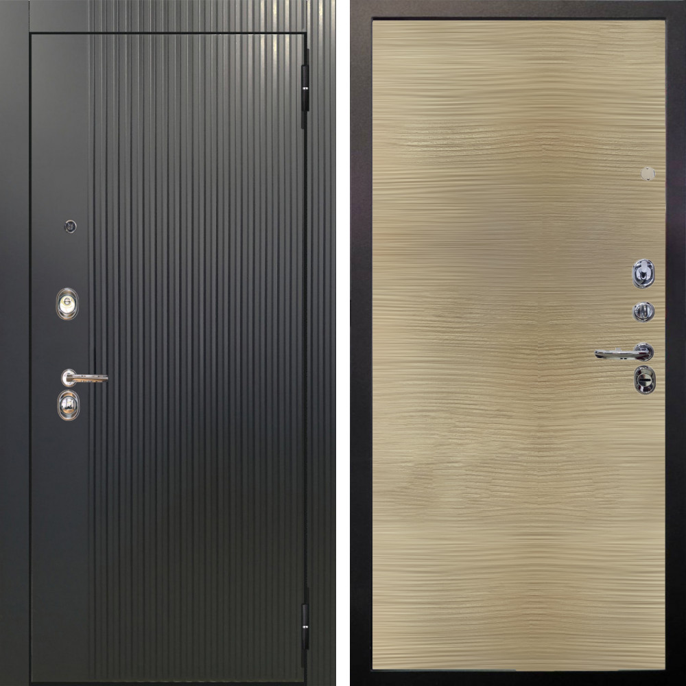Входная дверь Аргус ЛЮКС 3К Фрейда Черный кварц + Элегант Дорс светлый горизонт