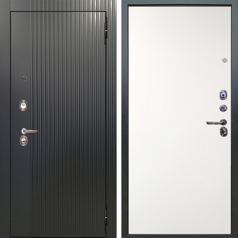 Входная дверь Агата Вайт (Бел мат, черное стекло) с внутренней отделкой Зеркало панорама Белый софт • Габаритные размеры: 2050x860 мм, 2050x960 мм • Металл 1.8мм • Внешнее покрытие: МДФ 16 мм. • Толщина полотна: 115 мм. • Толщина коробки: 120 мм. • Короб закрытого типа, утепленный • Уплотнитель: 3 контура • Два вертикальных ребра жесткости • Замок основной: Гардиан 6211 с блокировкой язычка • Замок дополнительный: Гардиан 6001 • Врезная броненакладка • Пазы на коробке под доборы • Независимая задвижка есть • Фурнитура Черная