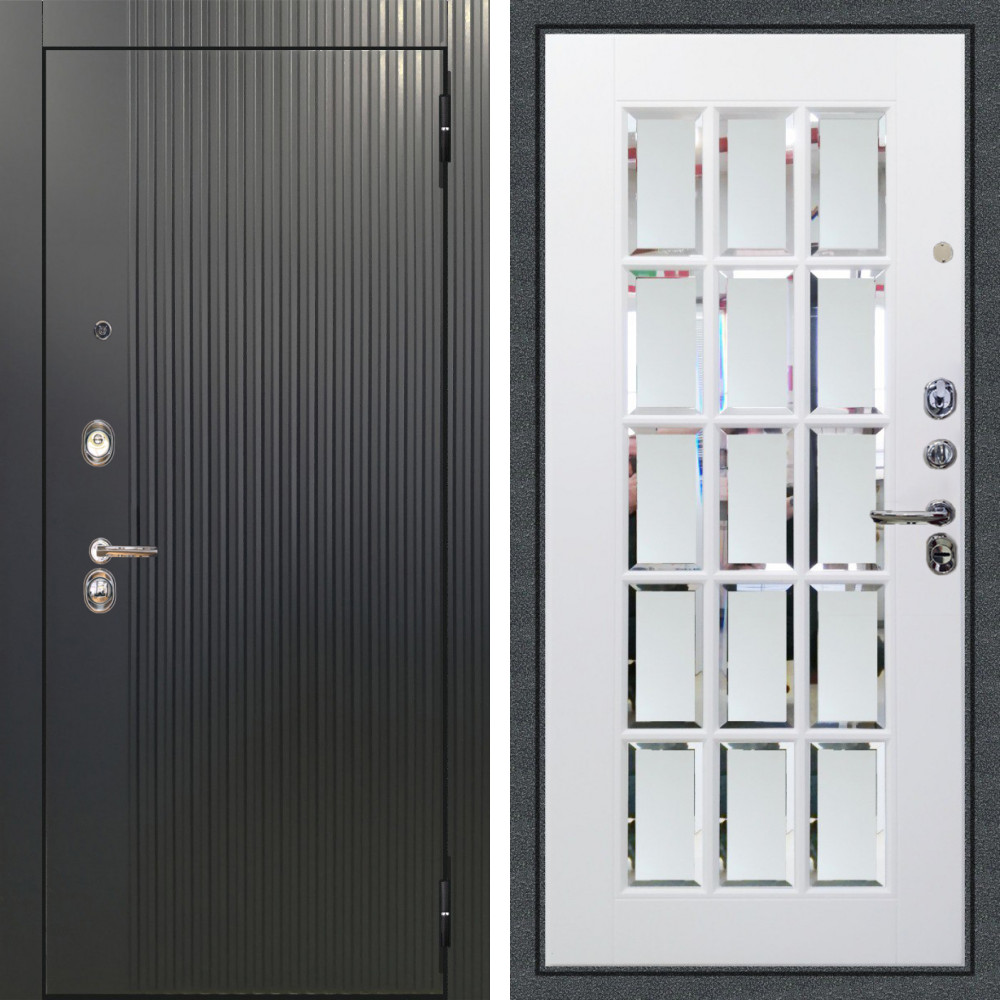 Входная дверь Аргус ЛЮКС 3К Фрейда Черный кварц + Мэрелин Софт милк зеркало с фацетом и пескоструем