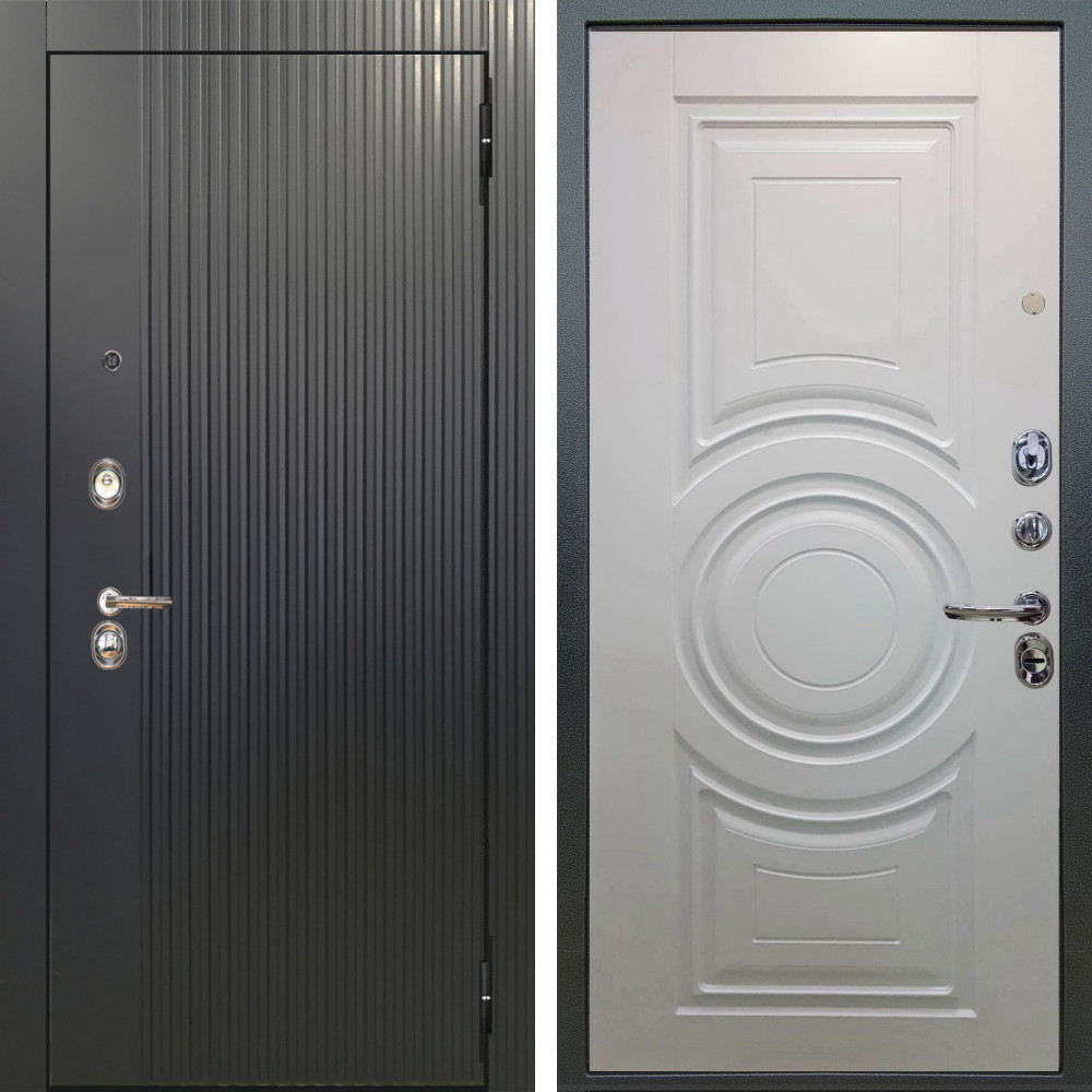 Входная дверь Termo-Door с утеплением: внешняя отделка Simple Графит, внутренняя отделка Flat Белый софт.Толщина полотна 100 мм., цилиндровый замок, доставка и установка в Москве и МО, гарантия 1 год.