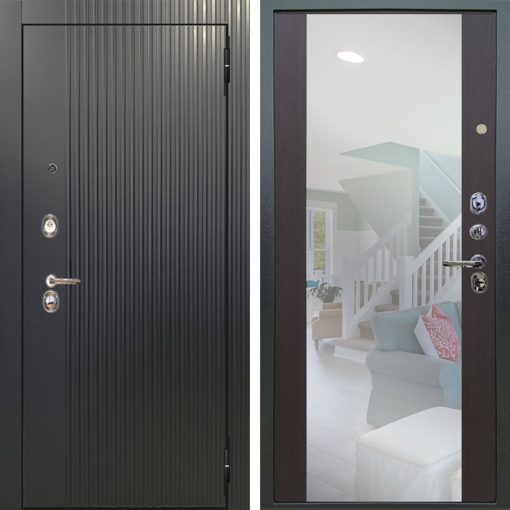 Входная дверь Termo-Door с утеплением: внешняя отделка Стоун Блэк, внутренняя отделка Зеркало белый софт.Толщина полотна 100 мм., цилиндровый замок, доставка и установка в Москве и МО, гарантия 1 год.