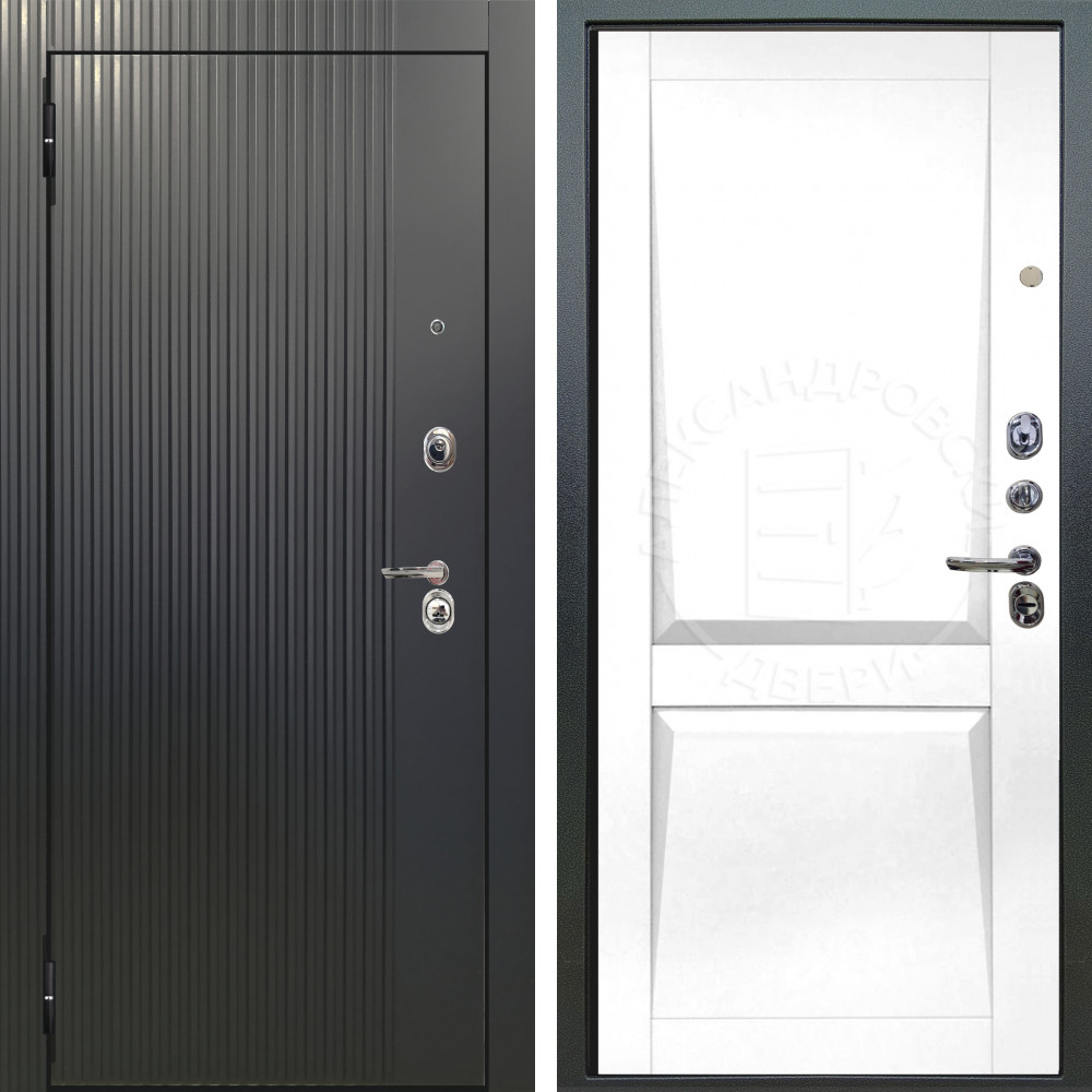 Входная дверь Аргус ЛЮКС 3К Фрейда ч кварц фортеза хром + Ариана Белая эмаль