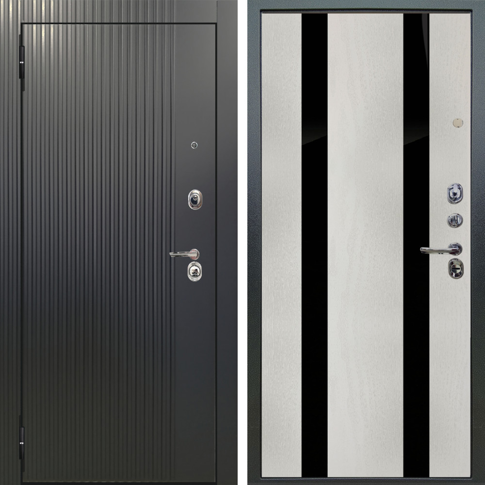 Входная дверь Аргус ЛЮКС 3К Фрейда ч кварц фортеза хром + Дуэт Белое дерево вставки Кензо