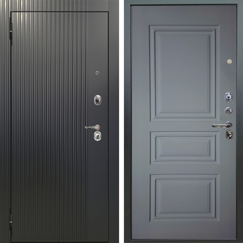 Входная дверь Termo-Door с утеплением: внешняя отделка Вертикаль Grey, внутренняя отделка Зеркало Grey Софт.Толщина полотна 100 мм., цилиндровый замок, доставка и установка в Москве и МО, гарантия 1 год.