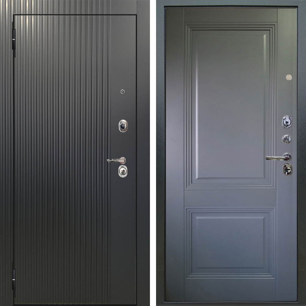 Входная дверь Termo-Door с терморазрывом и утеплением: внешняя отделка Арктика Графит, внутренняя отделка слоновая кость.Толщина полотна 95 мм, цилиндровый замок, доставка и установка в Москве и МО, гарантия 1 год.