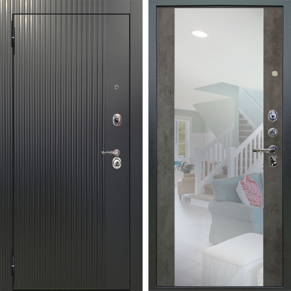 Входная дверь Termo-Door с утеплением: внешняя отделка Вертикаль Бетон Темный, внутренняя отделка Мастино Бетон темный.Толщина полотна 100 мм., цилиндровый замок, доставка и установка в Москве и МО, гарантия 1 год.