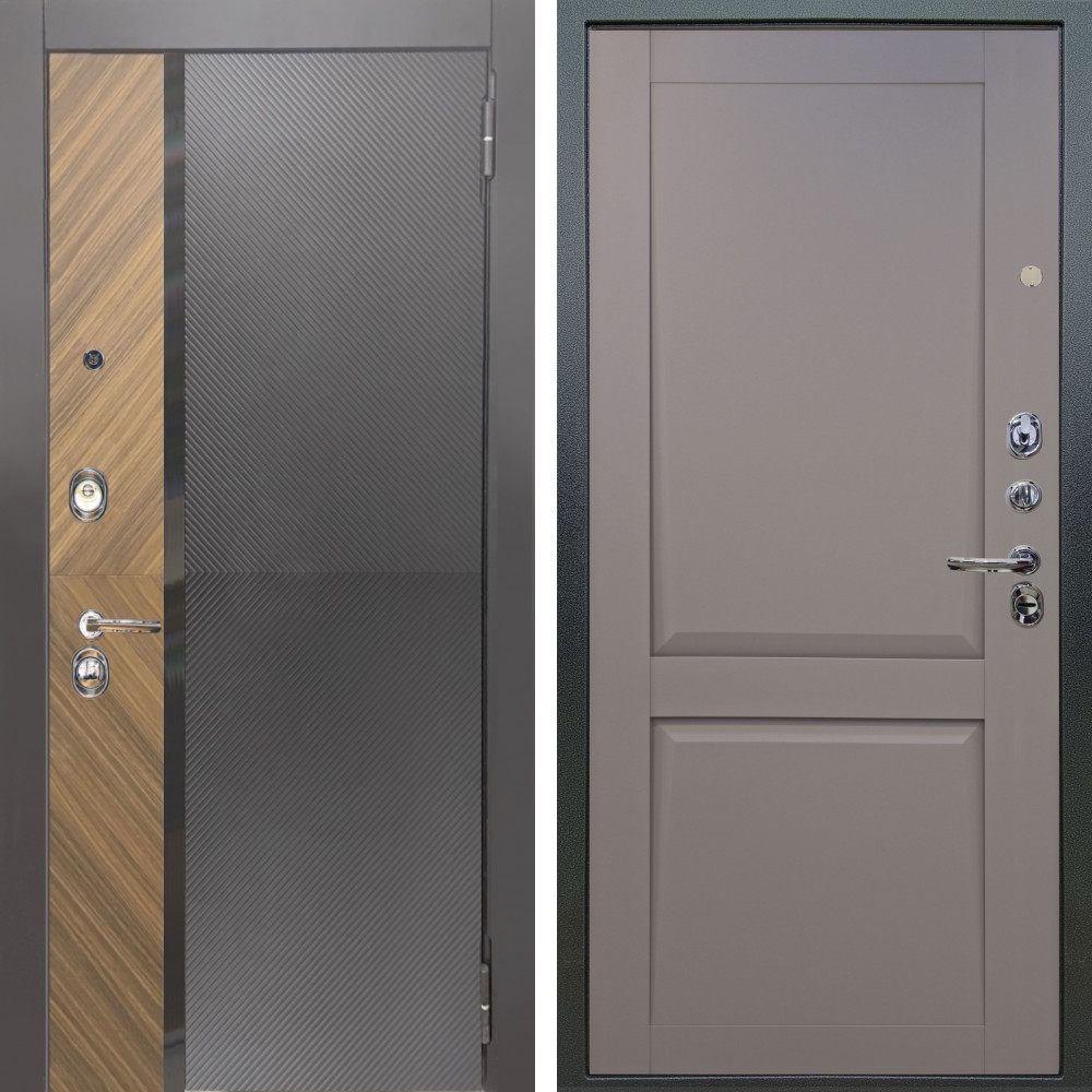 Входная дверь Termo-Door с терморазрывом и утеплением: внешняя отделка Премиум Винорит Grey, внутренняя отделка Мадрид Лиственница.Толщина полотна 95 мм, цилиндровый замок, доставка и установка в Москве и МО, гарантия 1 год.