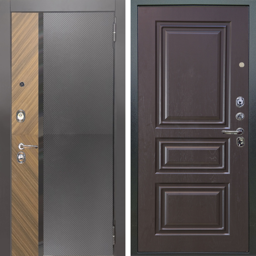 Входная дверь Termo-Door с утеплением: внешняя отделка Твист Дуб Патина, внутренняя отделка Зеркало Фацет Черный кварц+тонировка серая.Толщина полотна 100 мм., цилиндровый замок, доставка и установка в Москве и МО, гарантия 1 год.