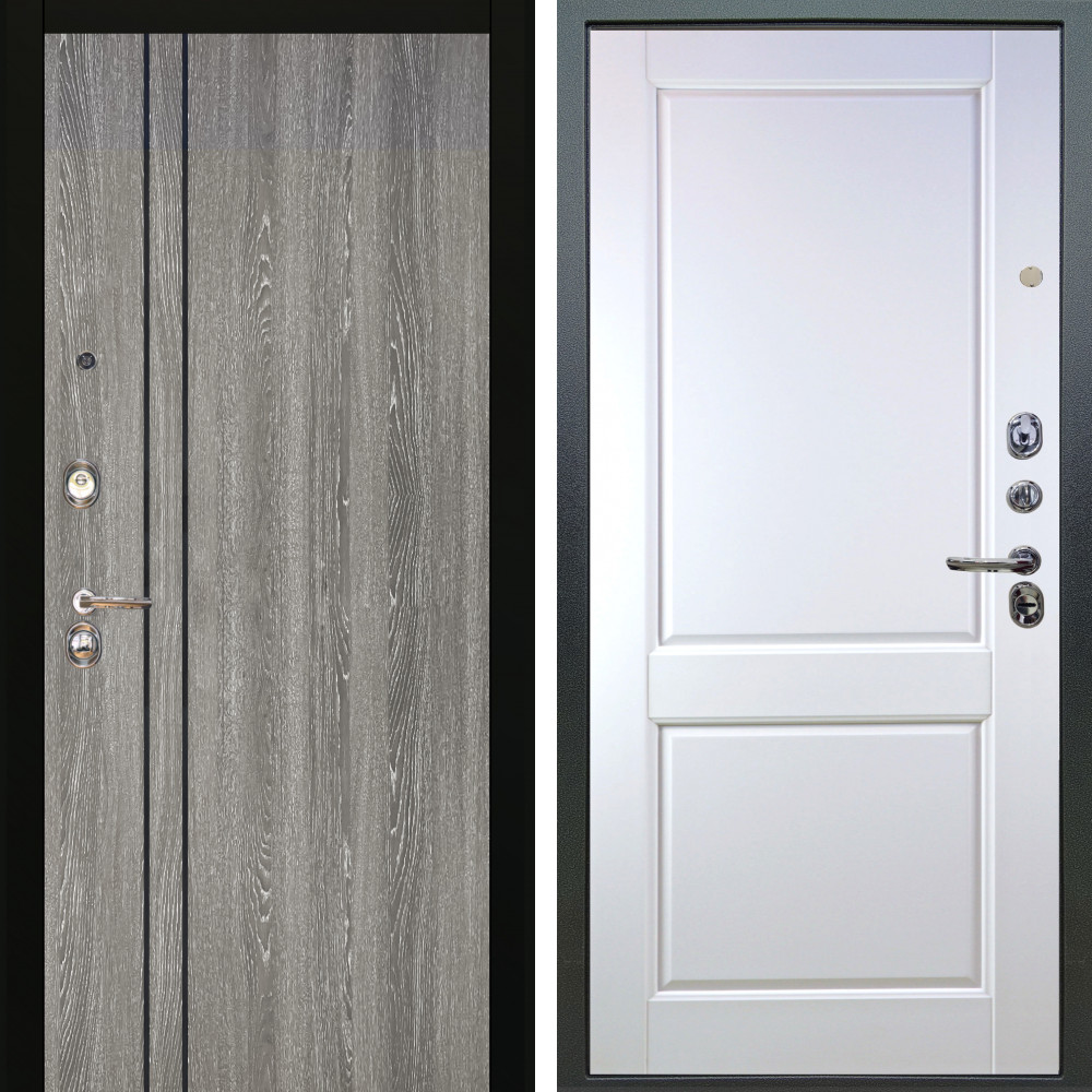 Входная дверь Termo-Door с утеплением: внешняя отделка Квантум Грей, внутренняя отделка Porte Grey софт.Толщина полотна 100 мм., цилиндровый замок, доставка и установка в Москве и МО, гарантия 1 год.