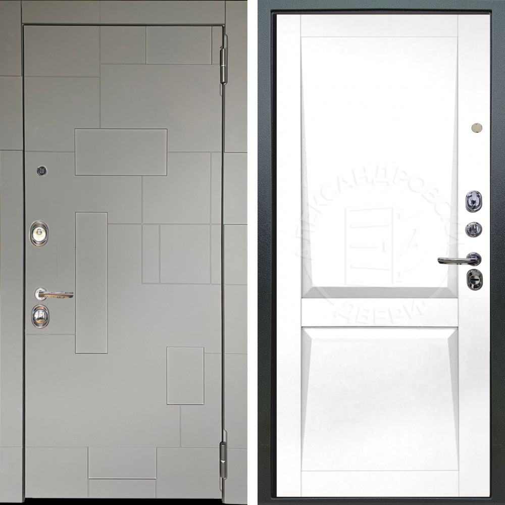 Входная дверь Termo-Door с утеплением: внешняя отделка Геометрия Бетон, внутренняя отделка Классика белое дерево.Толщина полотна 100 мм., цилиндровый замок, доставка и установка в Москве и МО, гарантия 1 год.