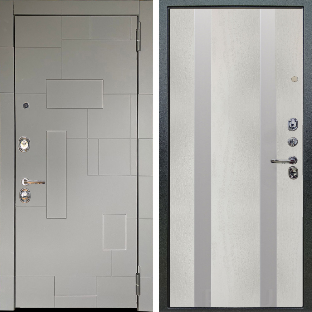 Входная дверь Аргус ЛЮКС 3К Корсо Силк флай + Дуэт Белое дерево вставки Изабель