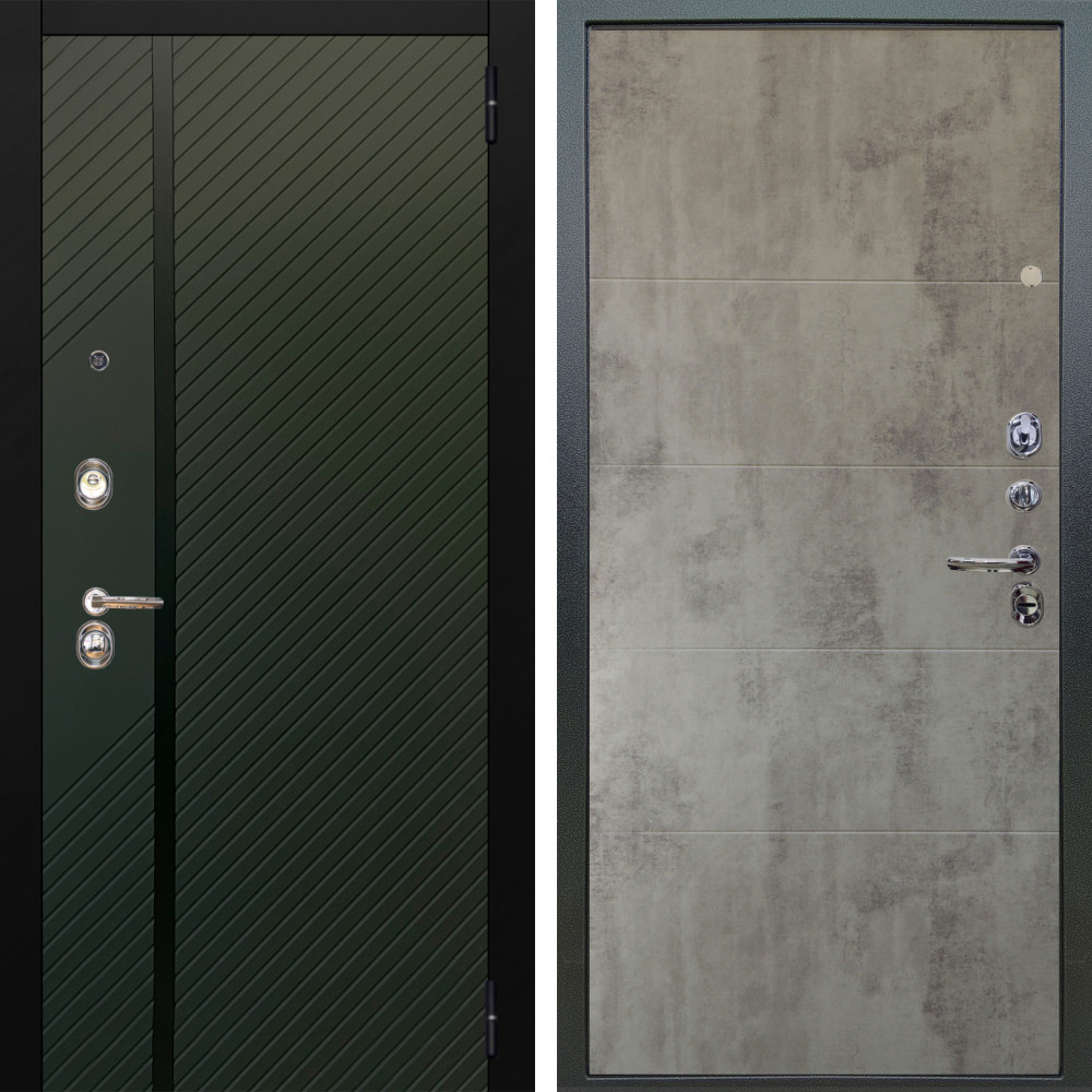 Входная дверь Аргус ЛЮКС 3К Ланцет Олива софт + Агат Светлый бетон