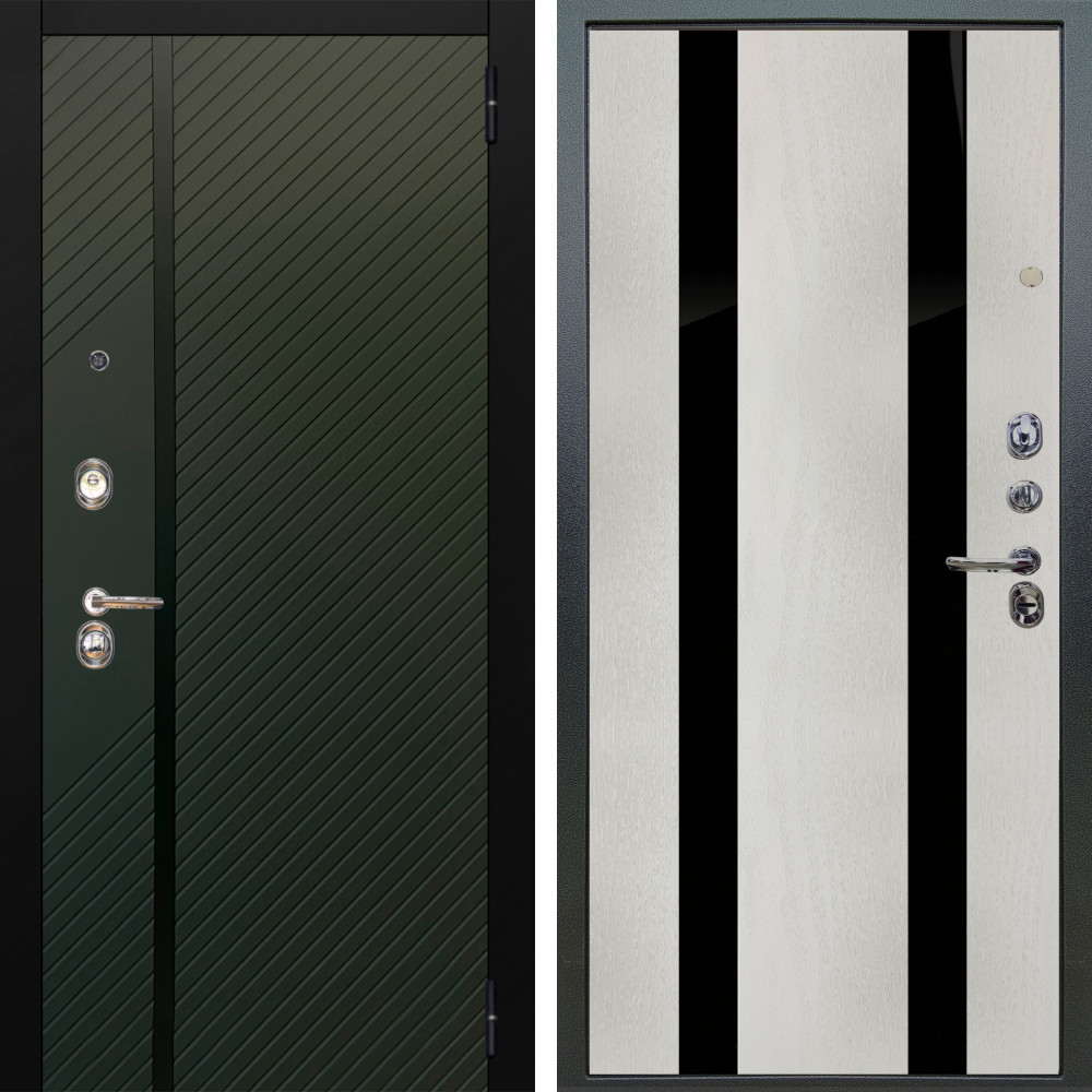 Входная дверь Аргус ЛЮКС 3К Ланцет Олива софт + Дуэт Белое дерево вставки Кензо