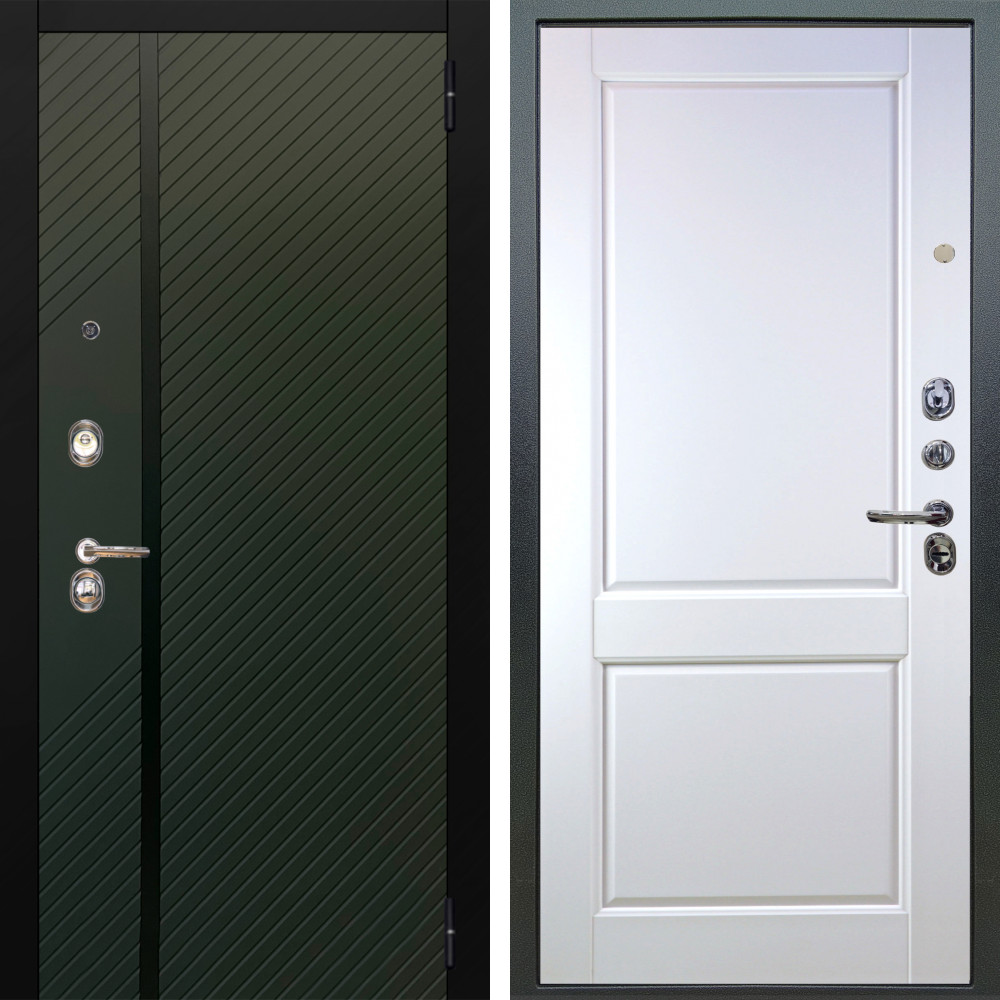 Входная дверь Аргус ЛЮКС 3К Ланцет Олива софт + Соренто Белая эмаль