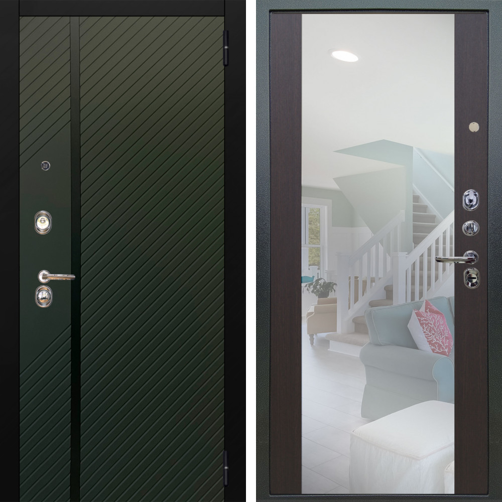 Входная дверь Оникс SMART с внутренней отделкой Зеркало венге • Габаритные размеры: 2050x860 мм, 2050x960 мм • Металл 1.8мм. Черная шагрень • Внешнее покрытие: МДФ 12 мм. • Толщина полотна: 115 мм. • Толщина коробки: 120 мм. • Короб закрытого типа, утепленный • Уплотнитель: 3 контура • Два вертикальных ребра жесткости • ЭЛЕКТРОННЫЙ ЗАМОК НА ВЫБОР • Замок дополнительный: Гардиан 6001 • Врезная броненакладка • Пазы на коробке под доборы • Независимая задвижка есть • Фурнитура ЧЕРНАЯ