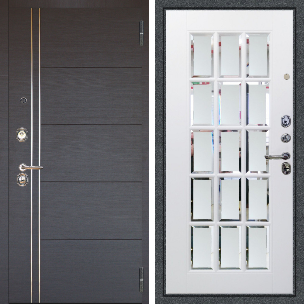 Входная дверь Аргус ЛЮКС 3К Лофт Венге горизонт + Мэрелин Софт милк зеркало с фацетом и пескоструем