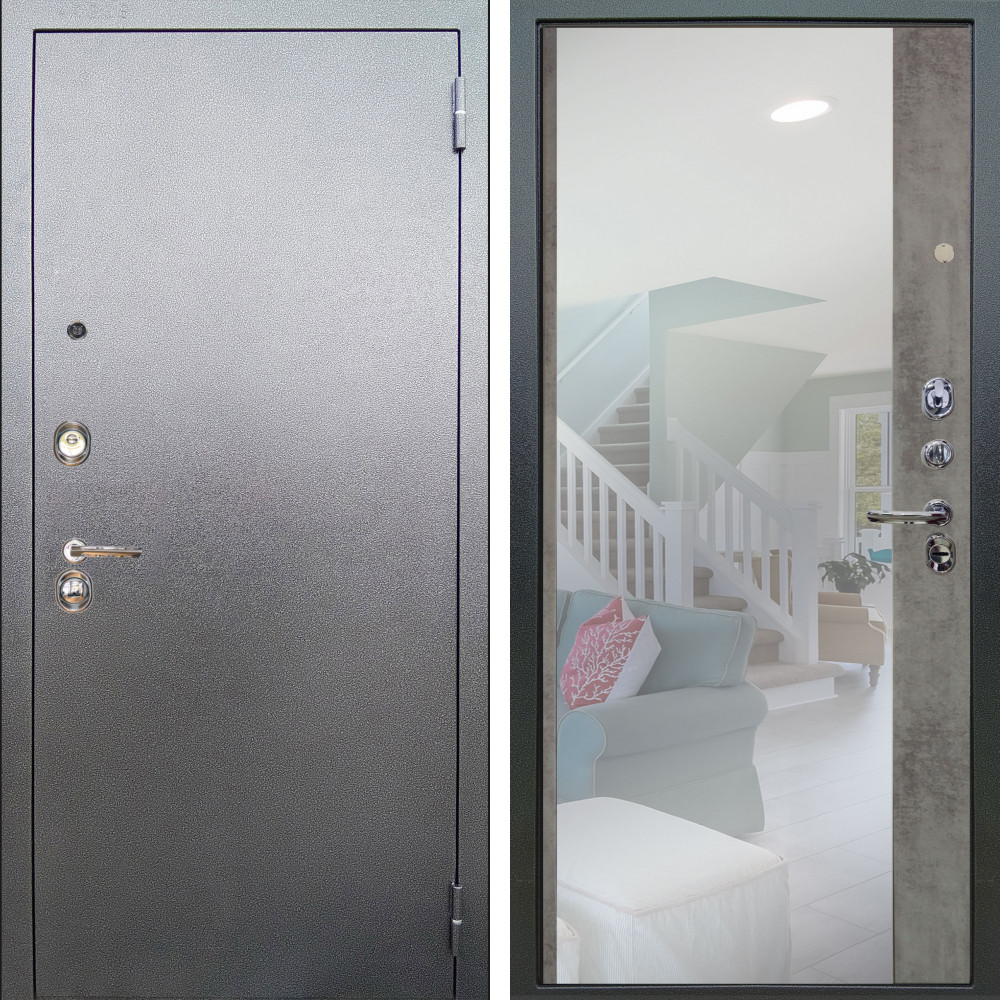 Входная дверь Termo-Door с утеплением: внешняя отделка Геометрия Бетон, внутренняя отделка Зеркало дуб.Толщина полотна 100 мм., цилиндровый замок, доставка и установка в Москве и МО, гарантия 1 год.