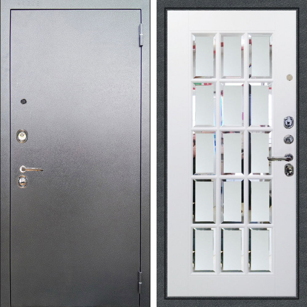 Входная дверь Аргус ЛЮКС 3К Люкс 3к металл Антик Серебро + Мэрелин Софт милк зеркало с фацетом и пескоструем
