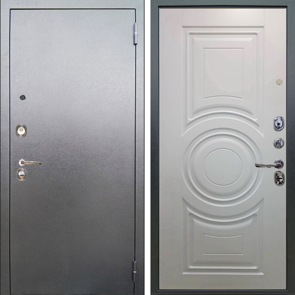 Входная дверь Афина Белый Мат с внутренней отделкой Лучи белый • Габаритные размеры: 2050x860 мм, 2050x960 мм • Металл 1.8мм • Внешнее покрытие: МДФ 16 мм. • Толщина полотна: 115 мм. • Толщина коробки: 120 мм. • Короб закрытого типа, утепленный • Уплотнитель: 3 контура • Два вертикальных ребра жесткости • Замок основной: Гардиан 6211 с блокировкой язычка • Замок дополнительный: Гардиан 6001 • Врезная броненакладка • Пазы на коробке под доборы • Независимая задвижка есть • Фурнитура ХРОМ