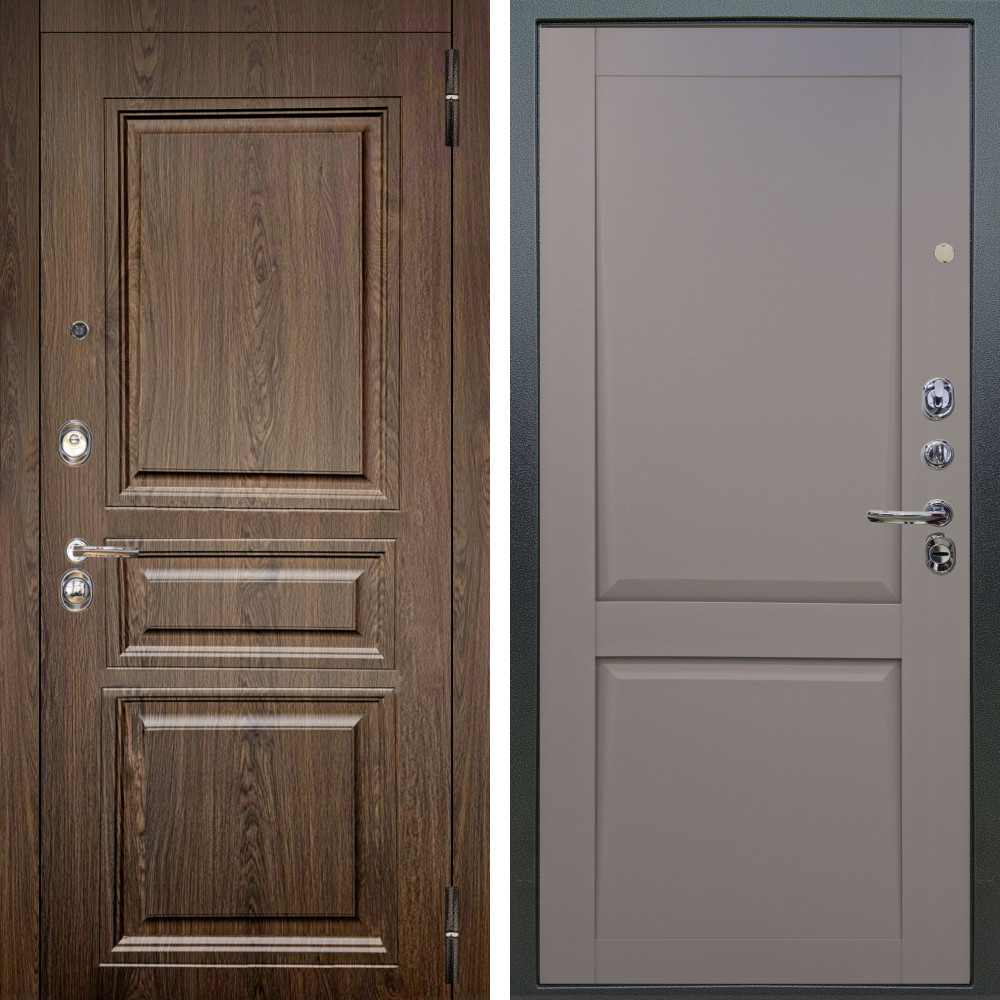 Входная дверь Termo-Door с утеплением: внешняя отделка Твист Grey, внутренняя отделка Без серии Орех стандарт.Толщина полотна 100 мм., цилиндровый замок, доставка и установка в Москве и МО, гарантия 1 год.