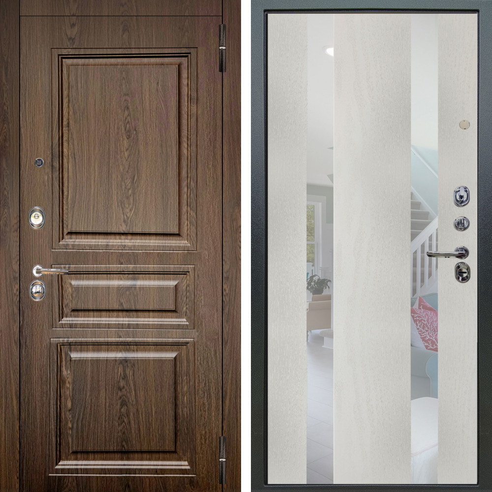 Входная дверь Аргус ЛЮКС 3К Магистр Дуб кантри + Дуэт белое дерево вставки Николь